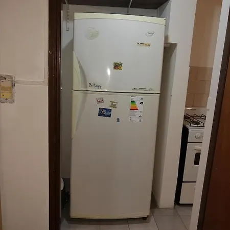 Eine Küche mit einem Wasserkocher, einem Kühlschrank und Küchenutensilien gehört zur Ausstattung der Ferienwohnung Centro Pichincha für Selbstversorger. Die Ferienwohnung Centro Pichincha ist in circa 300 Meter Entfernung von der nächstgelegenen Bushaltestelle Rosario Norte.